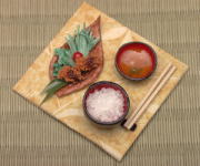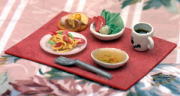 ちゃぶ台テーブルは難しい!丸は大変です。でも、この作品はお気に入りです。ラップが掛けられたごはんってなんかいい感じ。